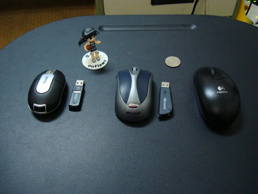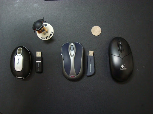 因為是筆電要用的,所以有線滑鼠就幾乎被踢掉了。右圖是迷你星貂,專門為筆電設計的捲線設計的相當棒,也是天滿姬(ASUS M9V)當時的附贈品,但缺點是...